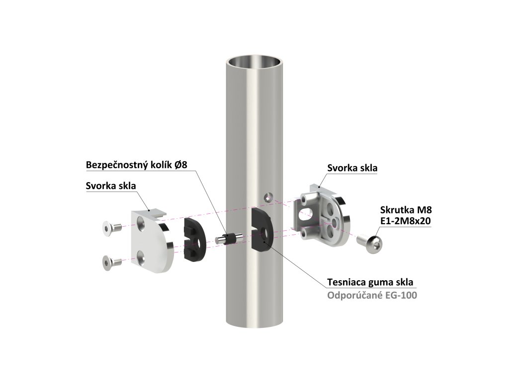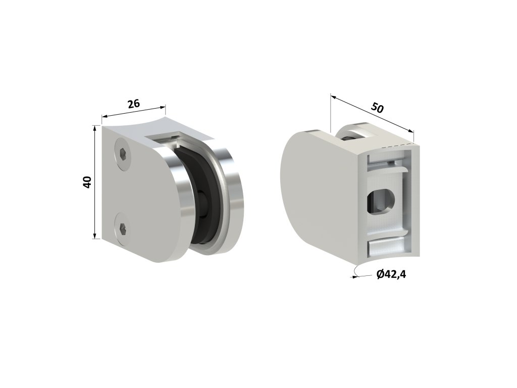 svorka skla na trubku ø 42.4mm (50x40x26mm), leštená nerez /AISI304, balenie neobsahuje gumičky na sklo