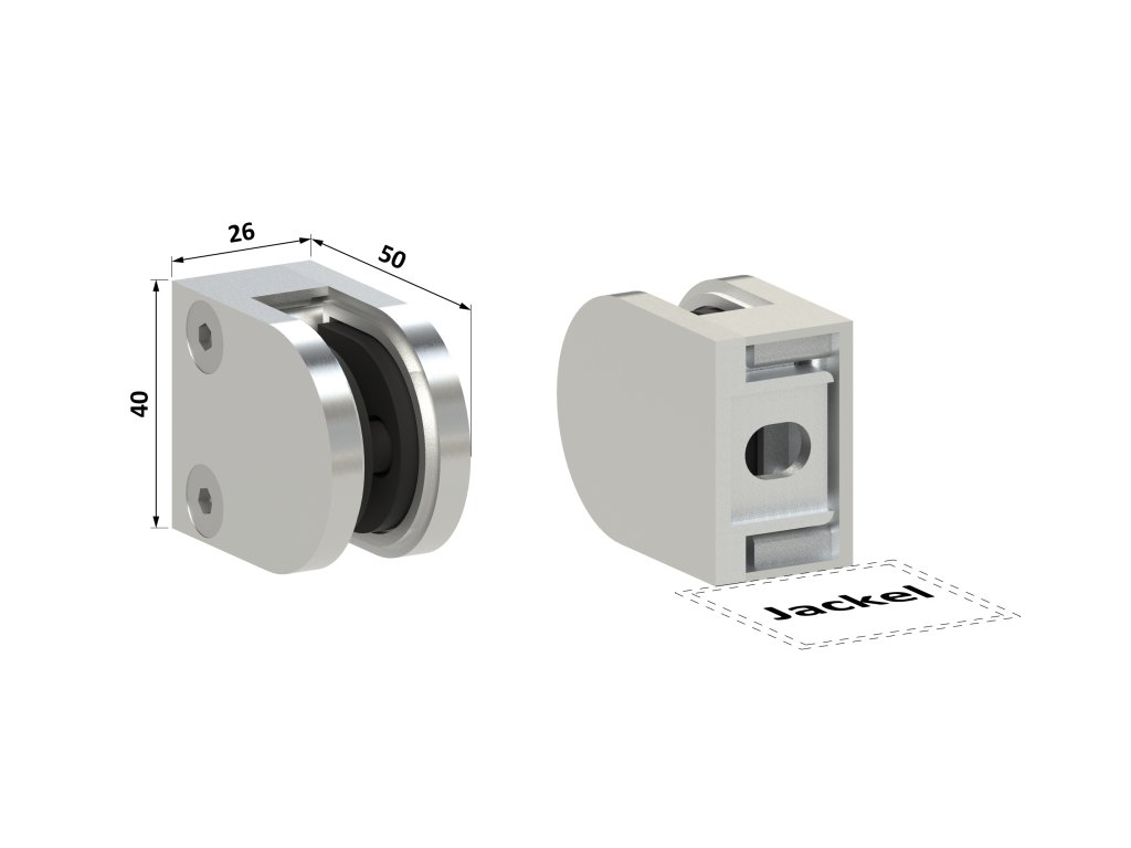 svorka skla plochá (50x40x26mm), brúsená nerez K320 /AISI316, balenie neobsahuje gumičky na sklo