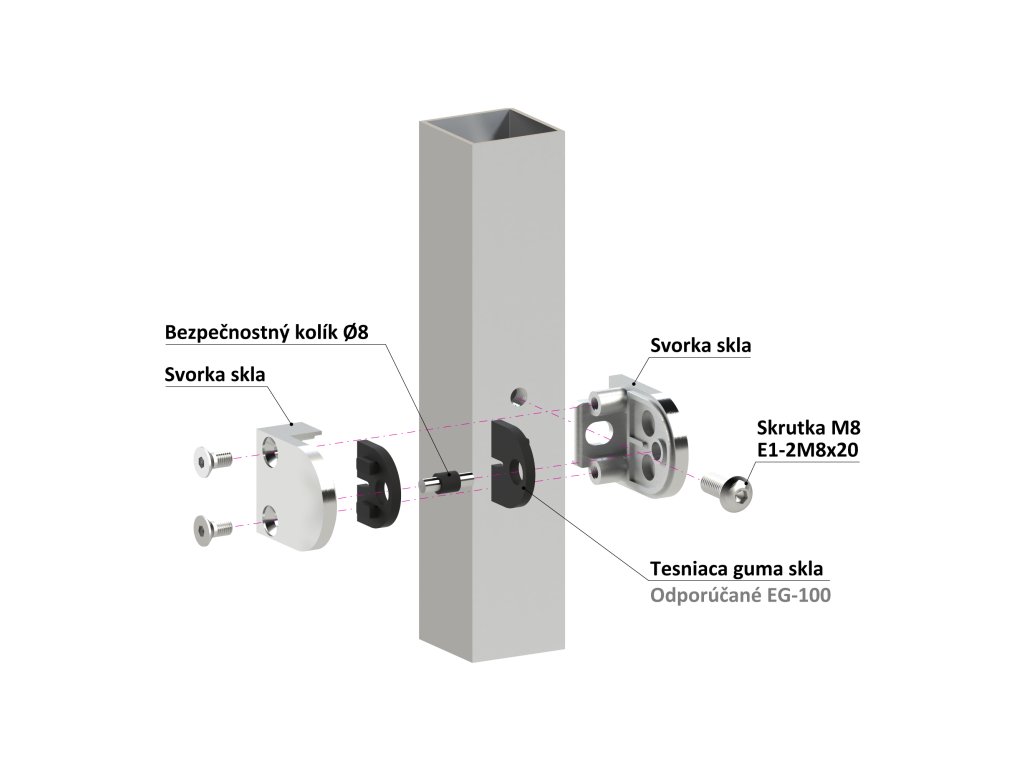 Svorka plochá, sklo 6 - 10,76 mm, brúsená nerez AISI 316