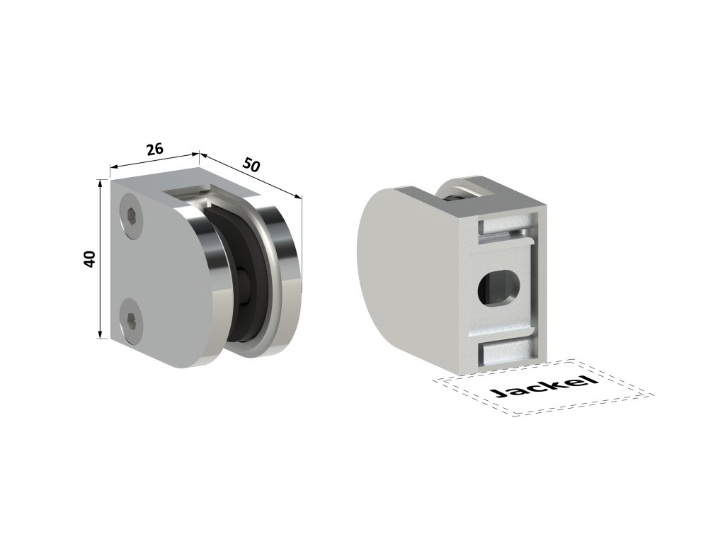 svorka skla plochá (50x40x26mm) leštená nerez /AISI304, balenie neobsahuje gumičky na sklo