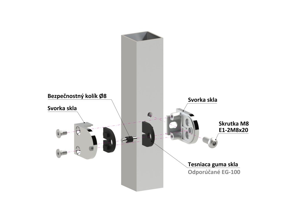 Svorka plochá, sklo 6 - 10,76 mm, leštená nerez AISI 304
