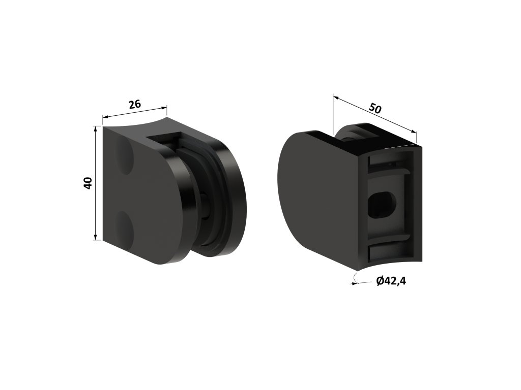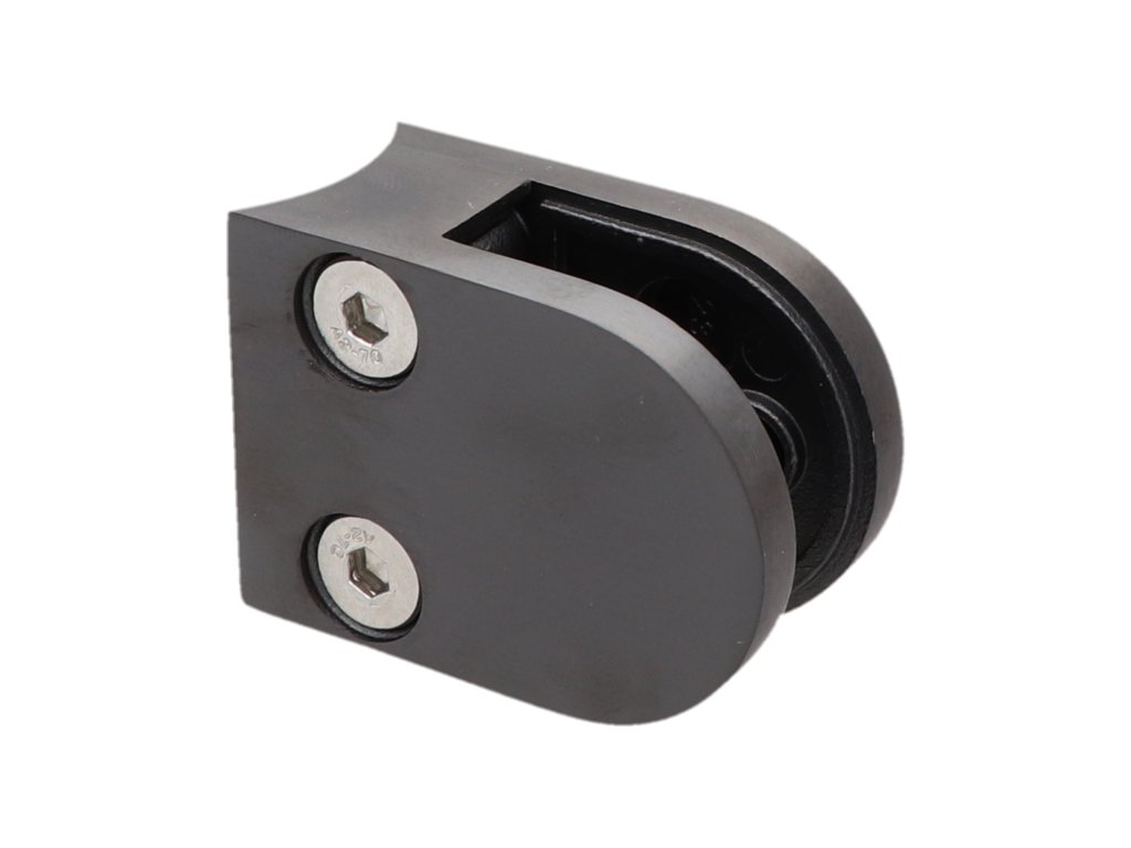 svorka skla na trubku ø 42.4mm (50x40x26mm) pre sklo 6-10.76mm, brúsená nerez K320 /AISI304, balenie neobsahuje gumi sklo, farba: PVD - čierna