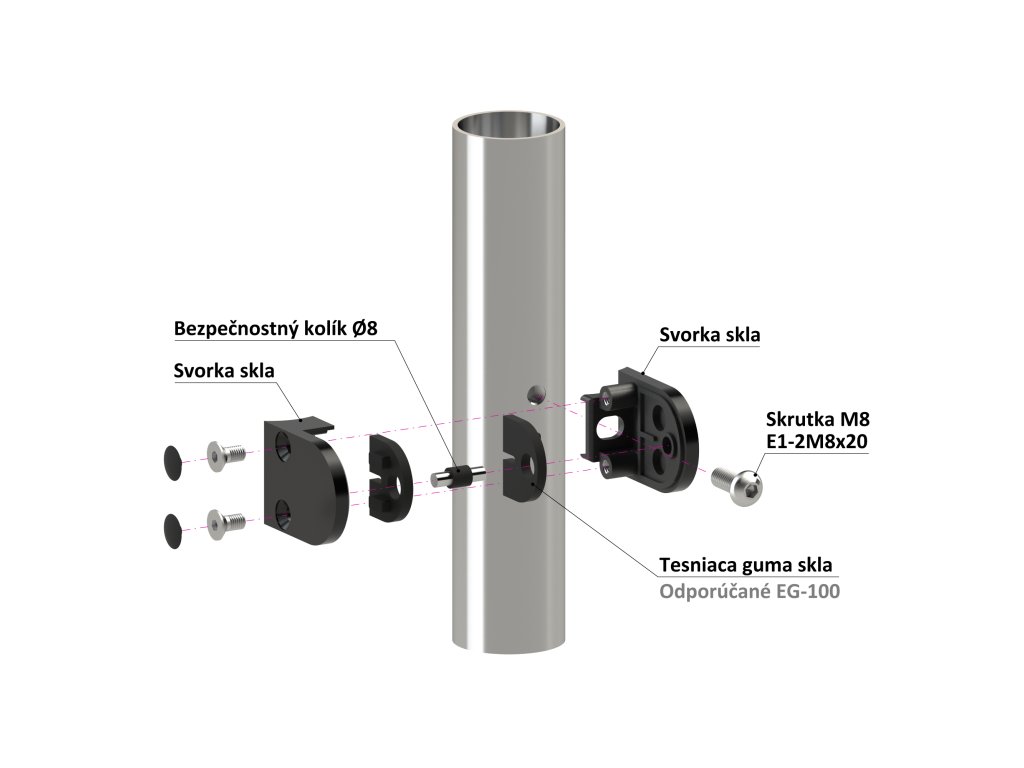 Svorka skla na trubku ø 42,4 mm, AISI 304, PVD - čierna