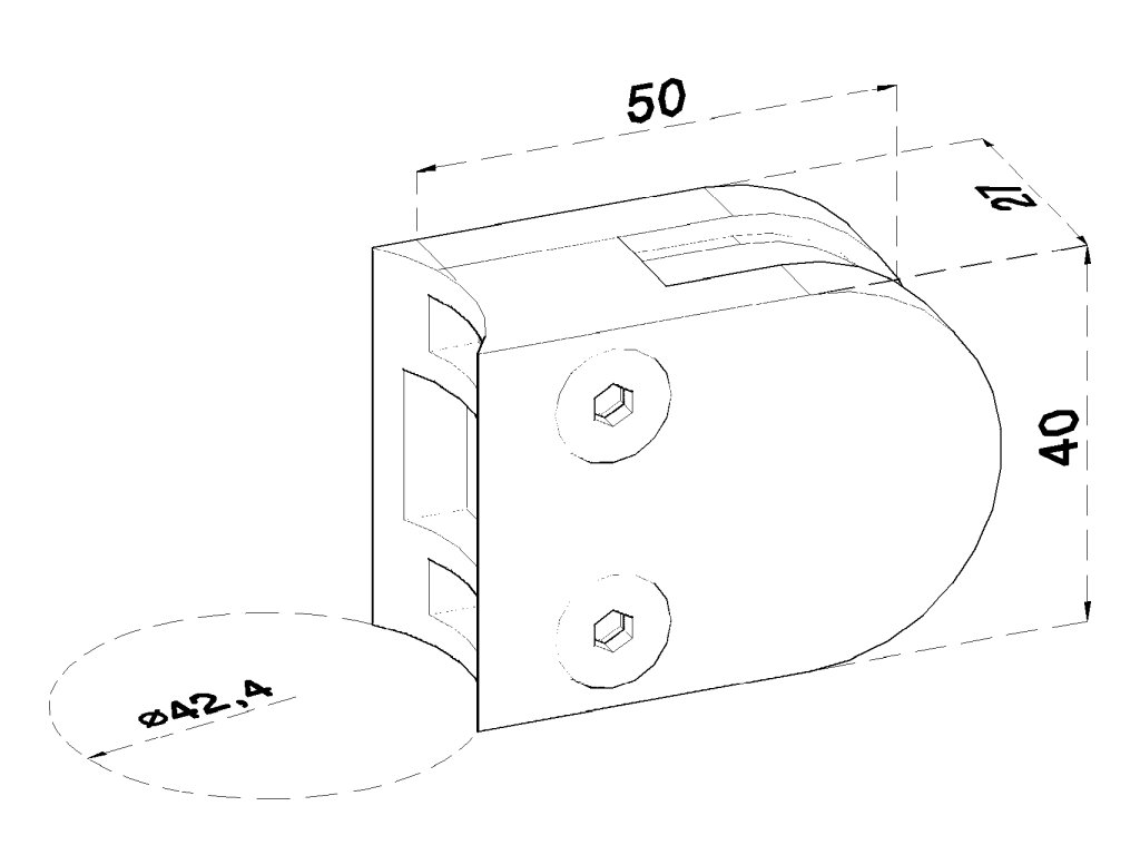 ZAMAK svorka skla na trubku ø 42.4mm (50x40x27mm) materiál: zliatina AL/ ZN, bez povrchovej úpravy (možnosť lakovania)
