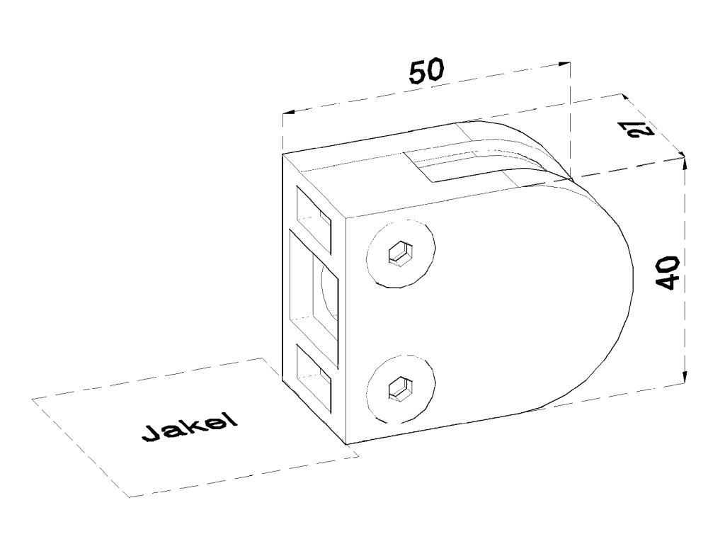 ZAMAK svorka skla plochá (50x40x27mm) materiál: zliatina AL/ZN, bez povrchovej úpravy (možnosť lakovania)