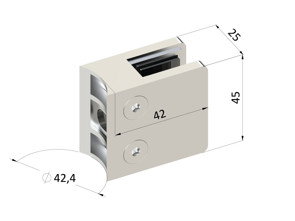 svorka skla / plechu na trubku ø 42.4mm (45x45x26mm), brúsená nerez K320 /AISI304, balenie neobsahuje gumičky na sklo