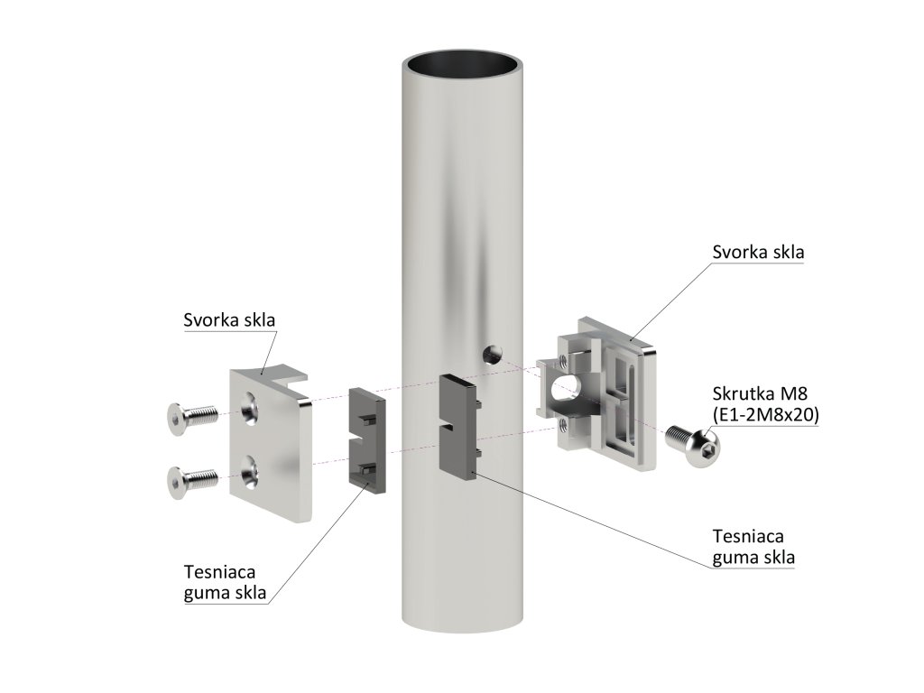 Svorka skla/plechu na trubku ø 42,4 mm, brúsená AISI 304