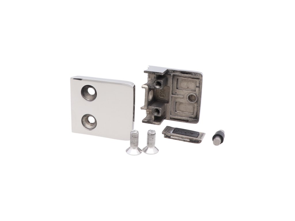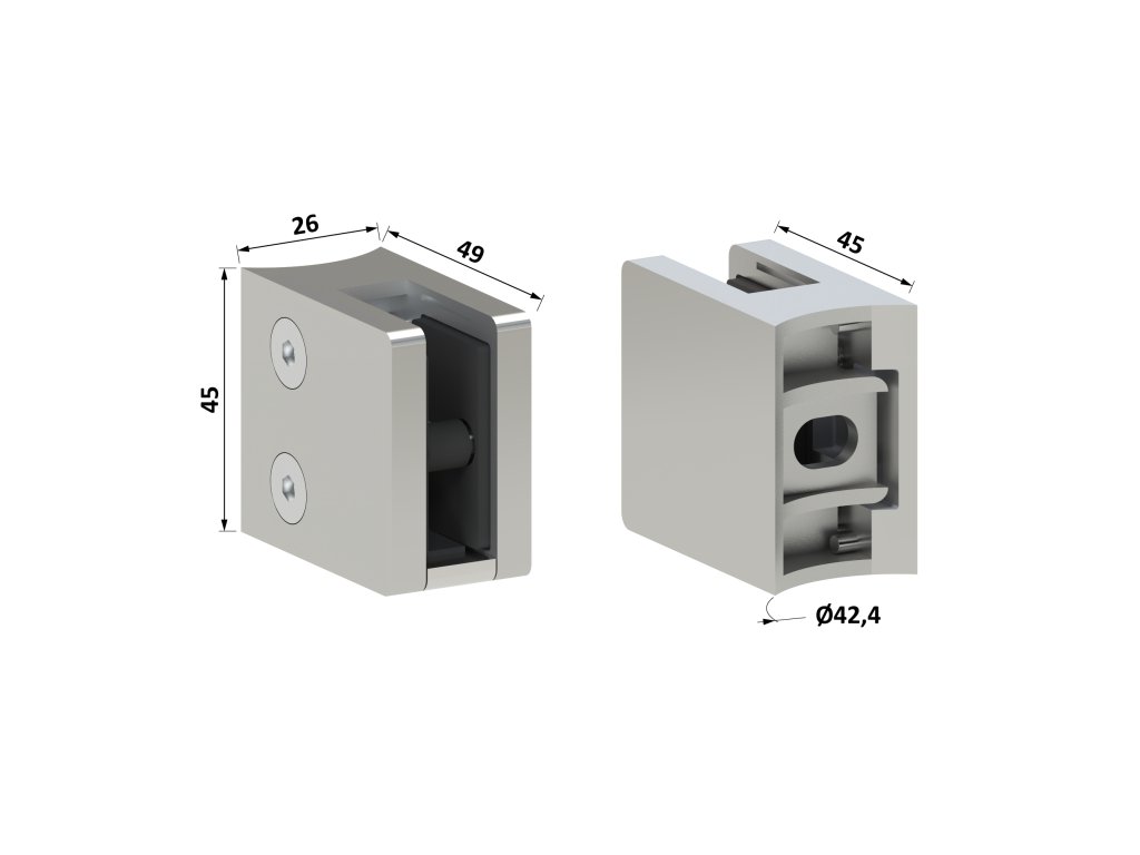 Svorka skla /plechu na trubku ø 42.4mm (45x45x27mm) pre sklo 6-12.76mm, so spodnou podložkou, leštená nerez AISI304, balenie neobsahuje gumičky na sklo