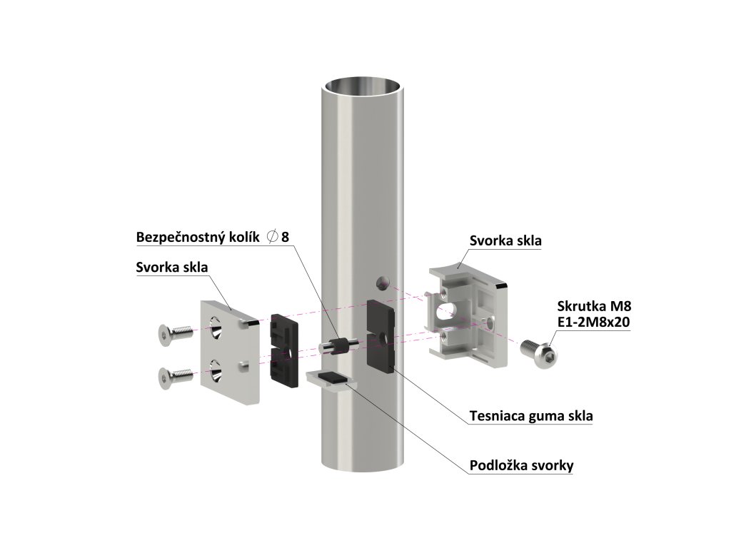 Svorka skla/plechu na trubku ø 42,4 mm, so spodnou podložkou