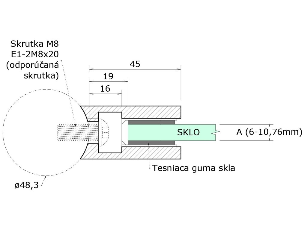 svorka skla / plechu na trubku ø 48.3mm (45x45x26mm), brúsená nerez K320 /AISI304, balenie neobsahuje gumičky na sklo