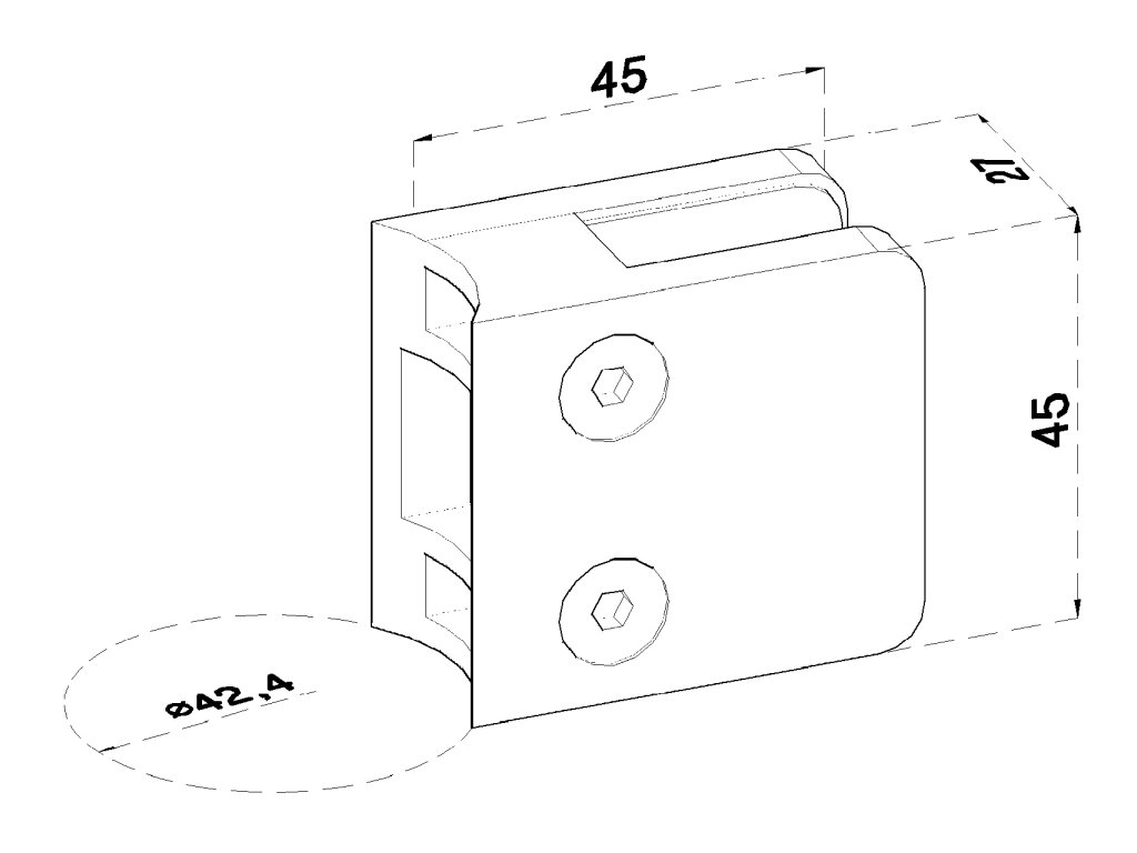 ZAMAK svorka skla na trubku ø 42.4mm (45x45x27mm) materiál: zliatina AL/ ZN, bez povrchovej úpravy (možnosť lakovania)