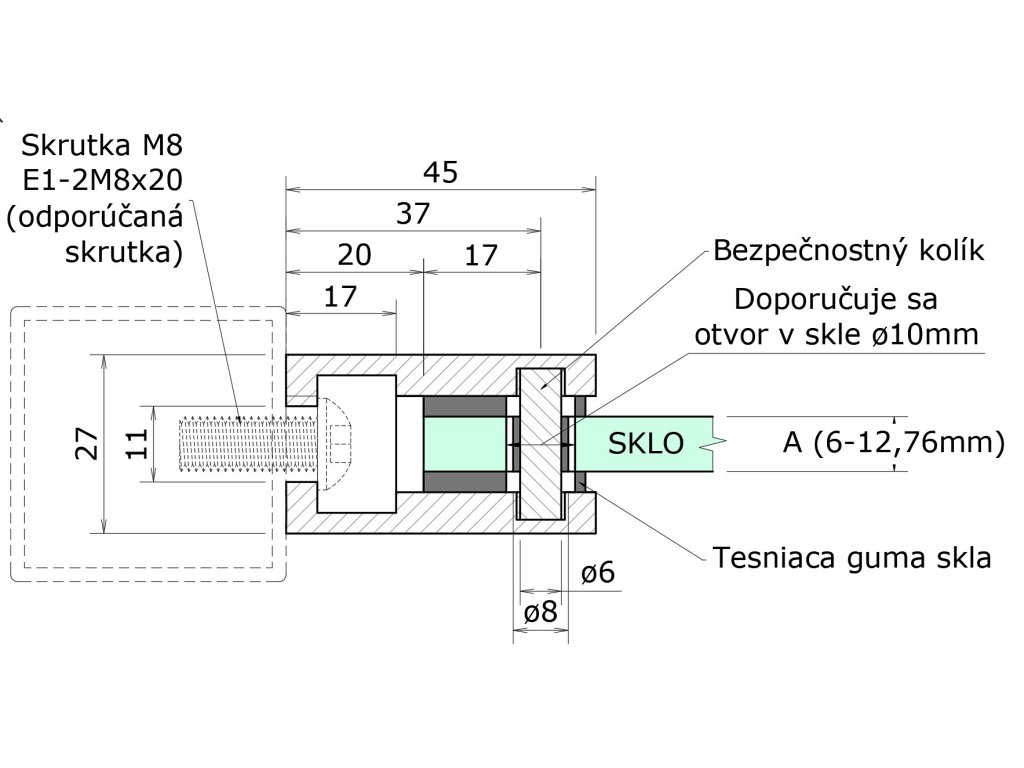 ZAMAK svorka skla plochá (45x45x27mm) pre sklo 6-12.76