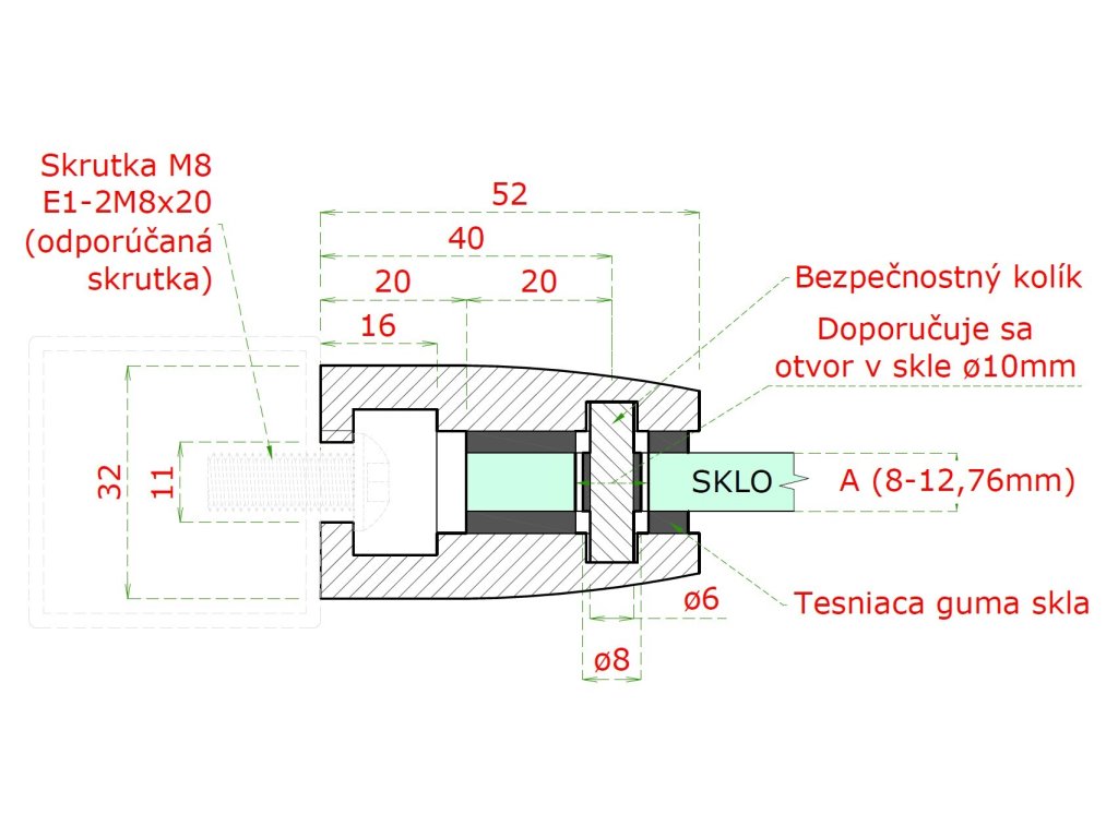 Svorka na jokel 40 x 40 mm, sklo 8 - 12,76 mm, AISI 304