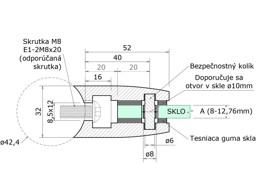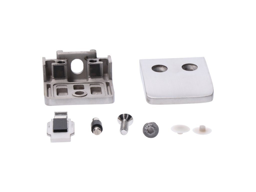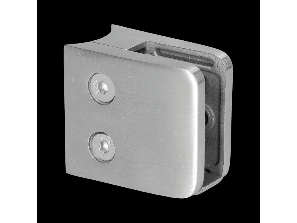 Svorka skla na trubku ø 42,4mm s podložkou a bezpeč. kolíkom (52x52x32mm), brúsená nerez K320 /AISI304, balenie neobsahuje gumičky na sklo