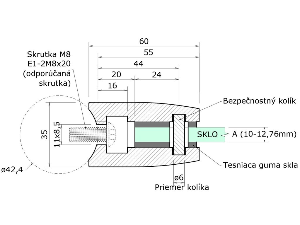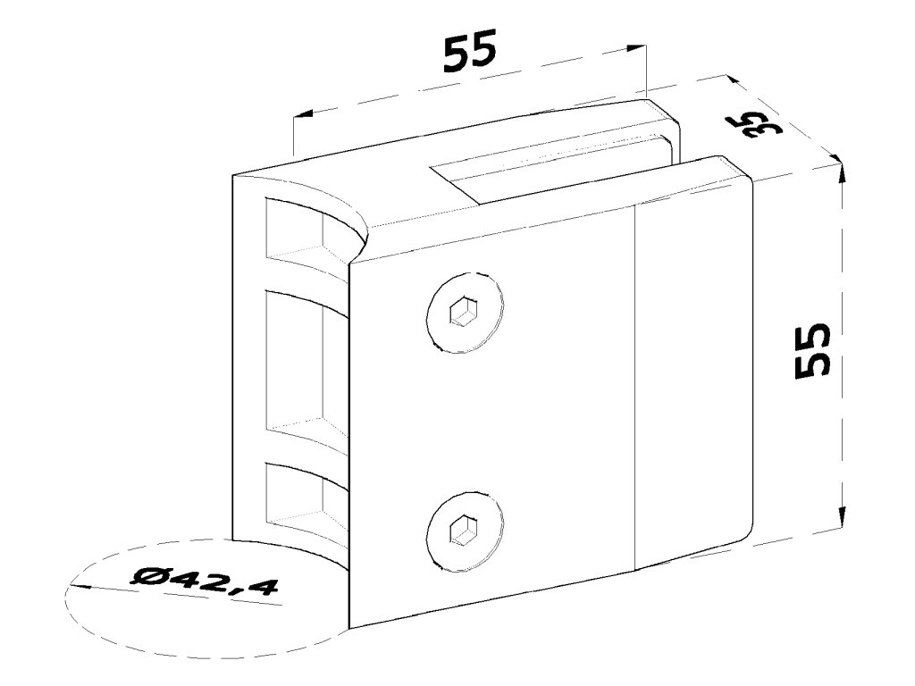 svorka skla na trubku ø 42.4mm (55x55x35mm) brúsená nerez K320/AISI304, balenie neobsahuje gumičky na sklo