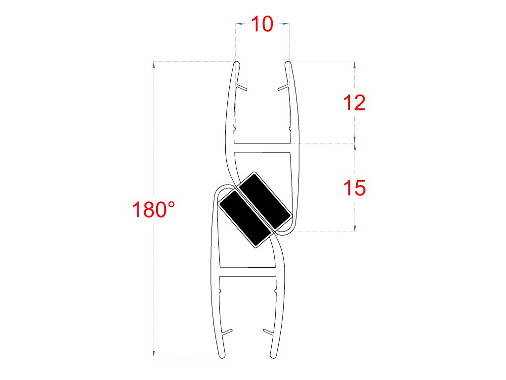 plastové tesnenia magnetické, na sklo 10mm, medzi dvoje sklenené dvere, 180°, 2200mm, 2ks
