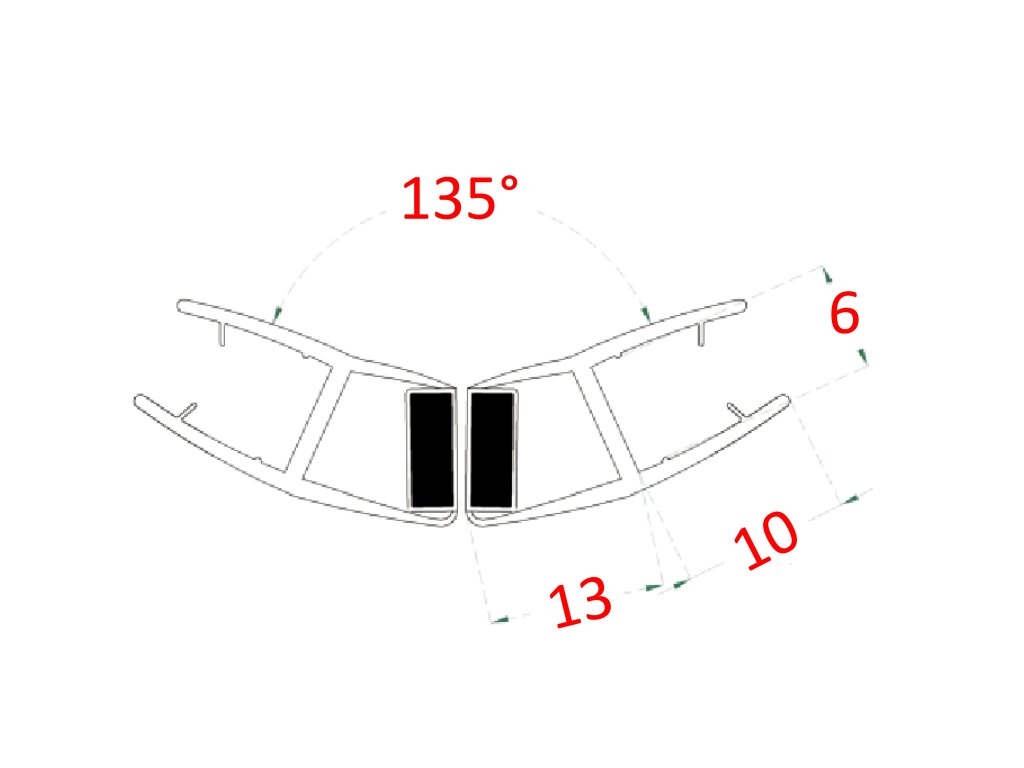 Plastové tesnenia magnetické, sklo 6 mm, 135°, L = 2200 mm
