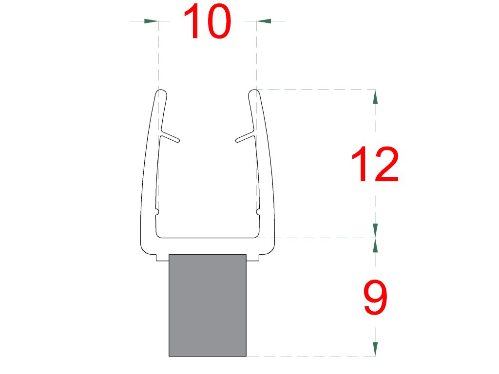 plastové tesnenie na sklo 10mm, medzi sklenené dvere a stenu alebo podlahu, 2200mm