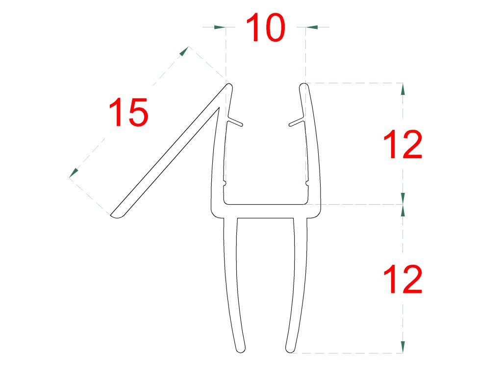 plastové tesnenie na sklo 10mm, medzi sklenené dvere a stenu alebo podlahu, 2200mm