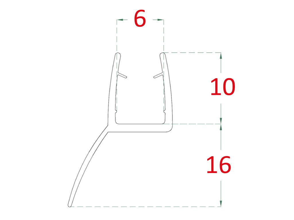 plastové tesnenie na sklo 6mm, medzi sklenené dvere a stenu alebo podlahu, 2200mm