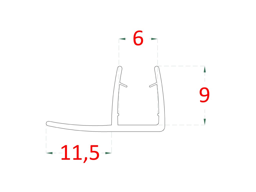 Plastové tesnenie na sklo 6mm, medzi sklenené dvere a stenu alebo podlahu, 2200mm