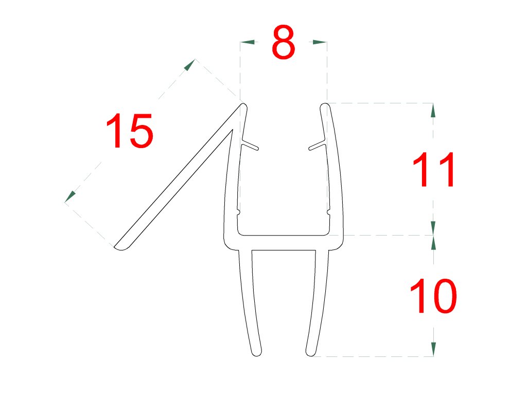 plastové tesnenie na sklo 8mm, medzi sklenené dvere a stenu alebo podlahu, 2200mm