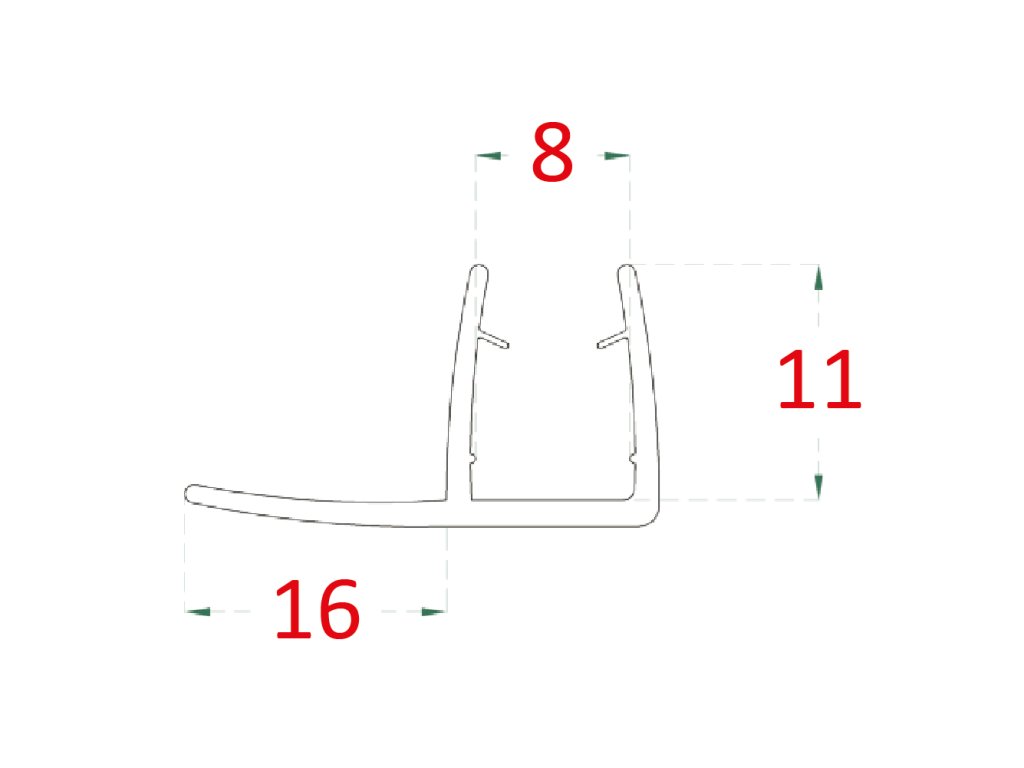 plastové tesnenie na sklo 8mm, medzi sklenené dvere a stenu alebo podlahu, 2200mm
