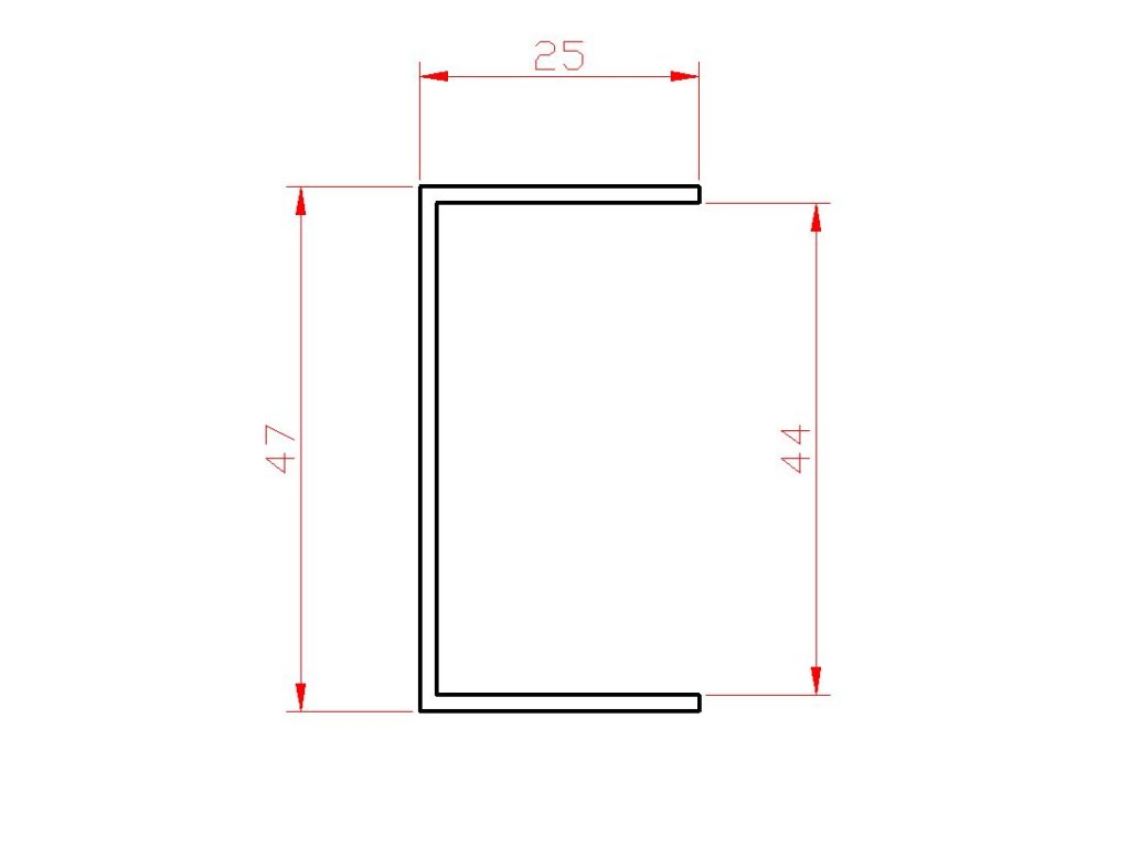 U-profil L-2000mm, 25x47x25x1,5mm, zinkovaný plech, použitie pre lamelu KLZ50Zn, cena za 2 metrový kus