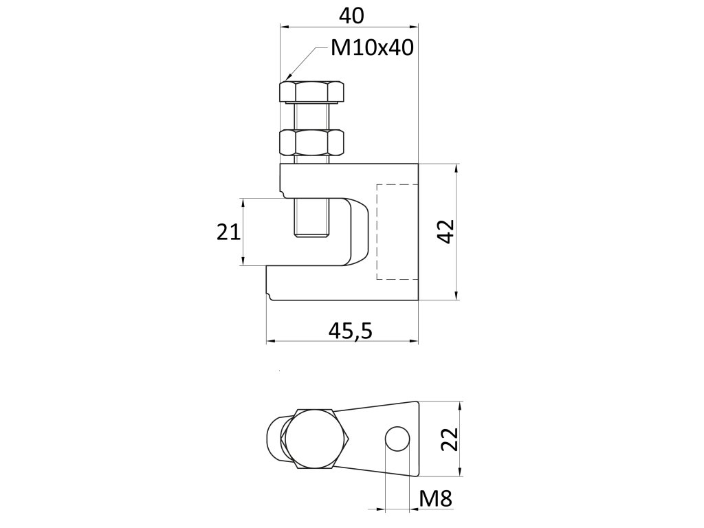 Pomocou nosnej svorky je možné upevnenie na valcované profily I, IPE, U, UPE, HEA, HEB, L bez vŕtania a zvárania.