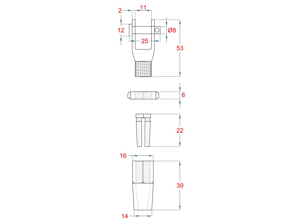 úchyt pre nerezové lanko ø 5mm, brúsená nerez K320/AISI304