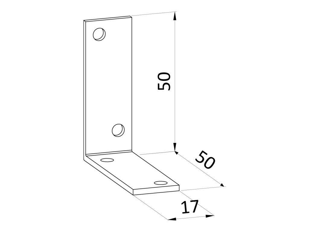 Uholník 50 x 50 x 17 x 2 mm, pozink, otvory ø 4,5 mm