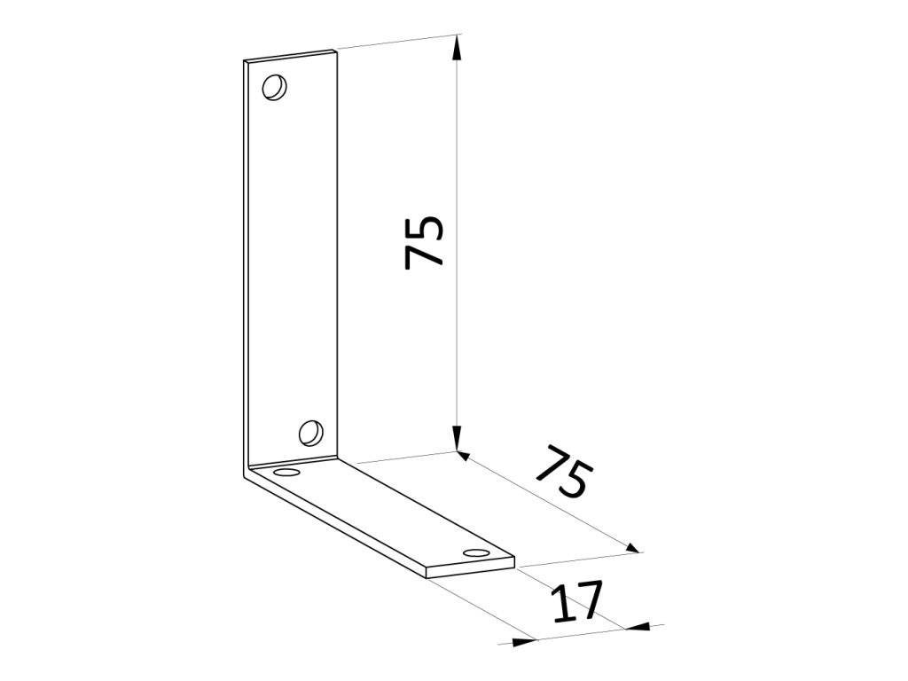 Uholník 75 x 75 x 17 x 2 mm, pozink, otvory ø 4,5 mm