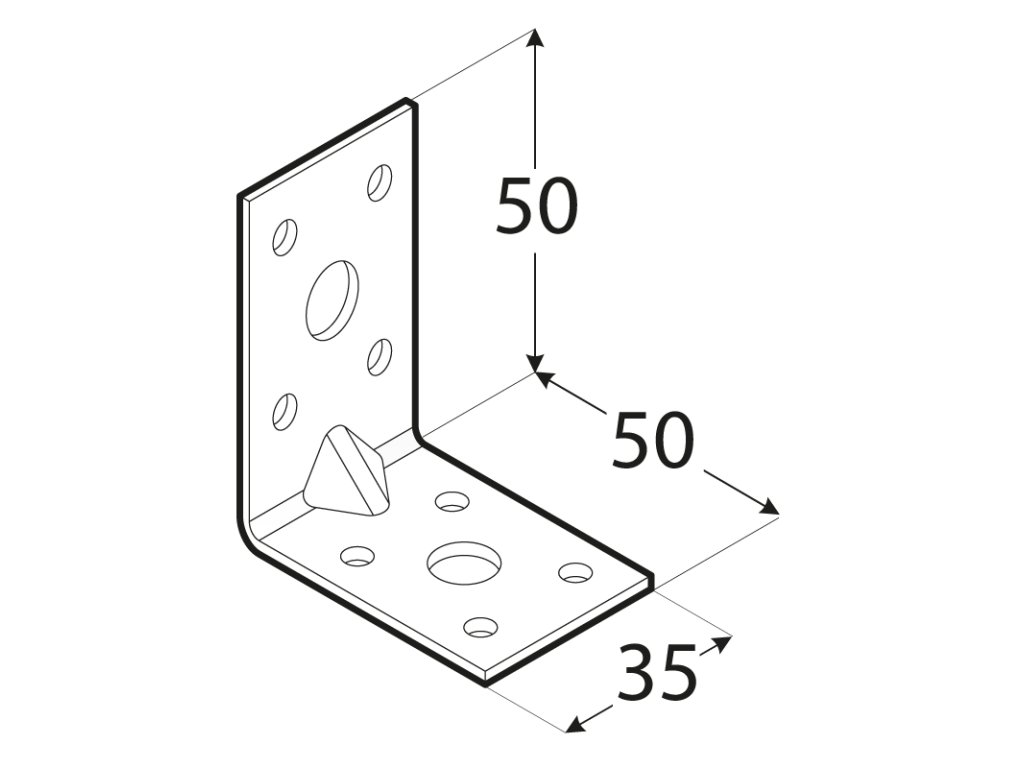 Uholník s prelisom 50 x 50 x 35 x 2 mm, pozink, ø 5/11 mm