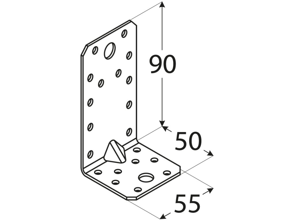 Uholník s prelisom 90x50x55mm, 2,0mm, pozink, otvory priemer 5mm-20ks, 11mm-2ks