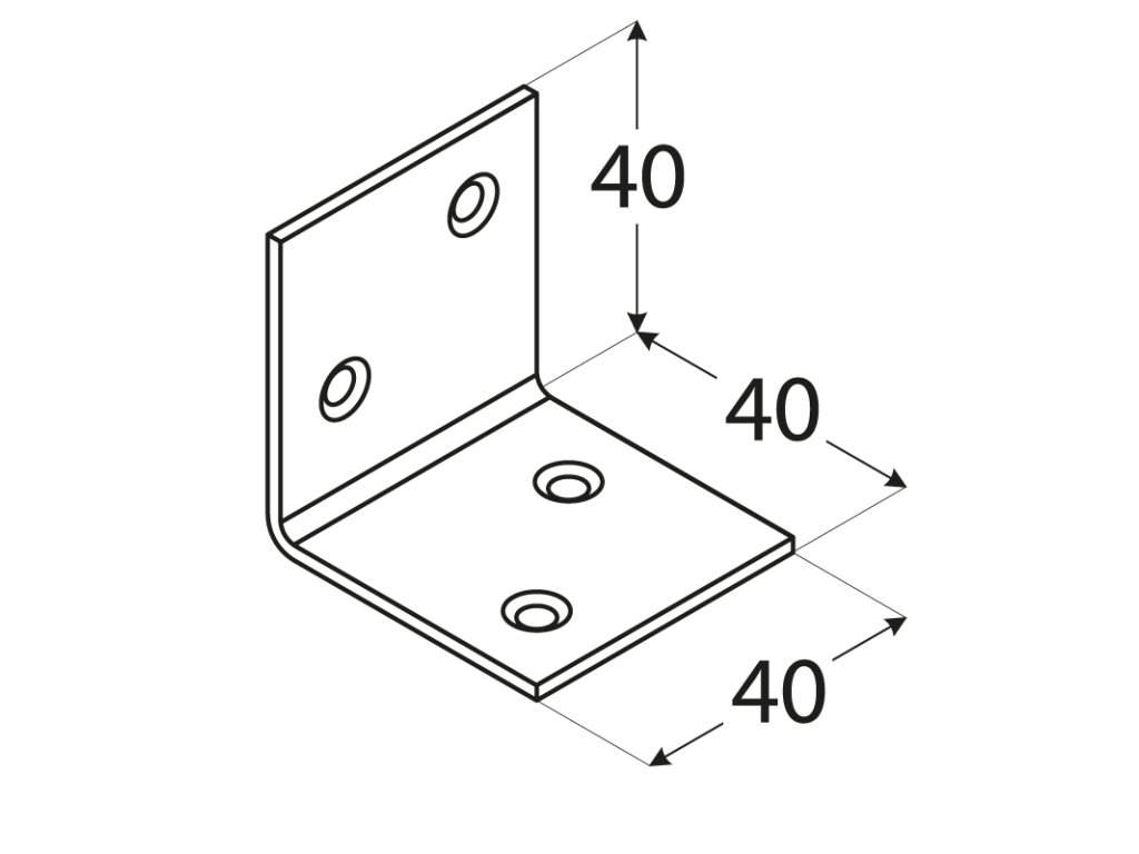 Uholník široký 40 x 40 x 40 x 1,5 mm, pozink, ø 4,5 mm