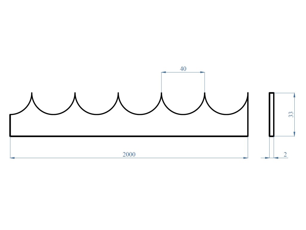 Ochranný hrebeň 2000 x 2 mm, rovný, bez povrchovej úpravy