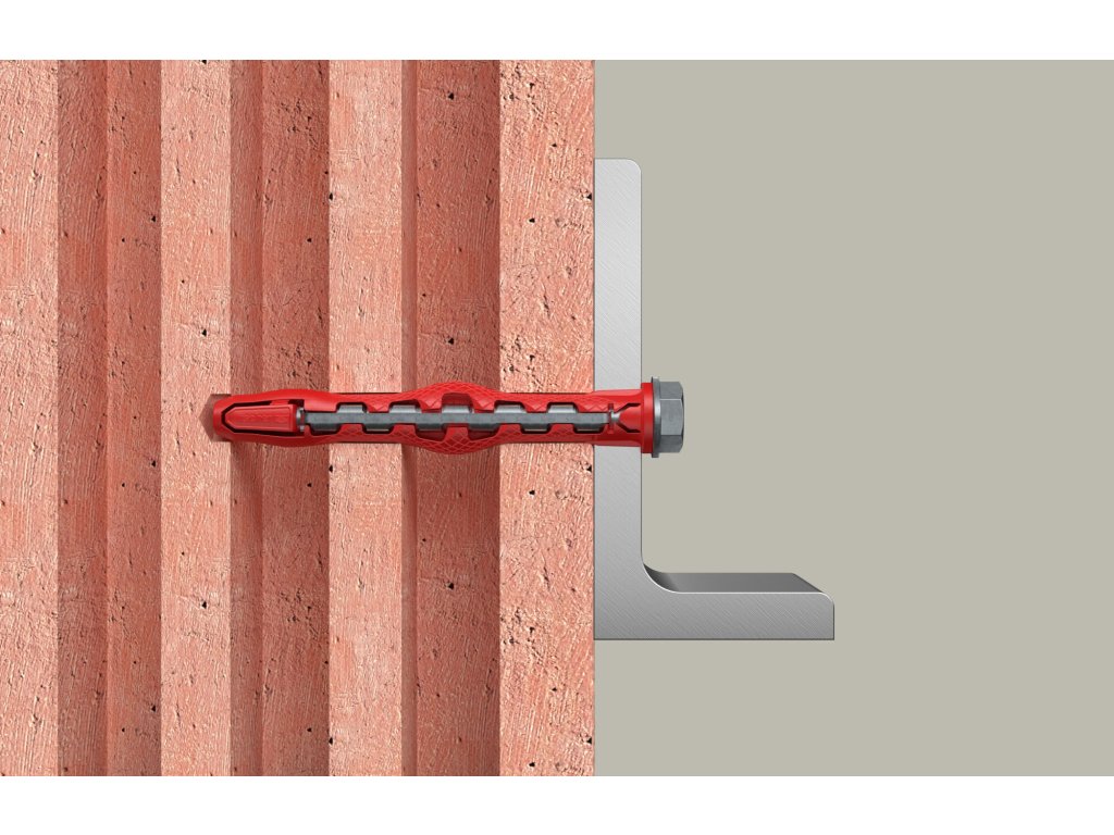 Kotva je vhodná na upevnenie držiakov TV, políc, svietidiel, kuchynských skriniek, kovových a drevených prvkov či zariadení ako klimatizácia alebo vodoinštalácia. Funguje v betóne, plnej tehle, ľahkom betóne, pórobetóne a pod.