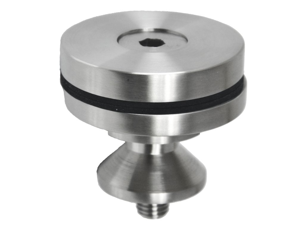 držiak (ø: 62mm) pre spodné kotvenie stĺpika - trubky ø: 42.4mm, brúsená nerez K320 /AISI304, balenie obsahuje gumičky