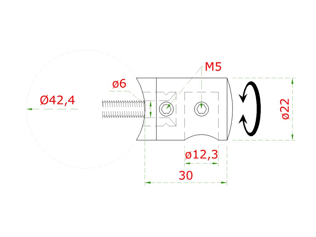 držiak tyče ø 12mm (koncový-pravý) na trubku ø 42.4mm (30x22mm), brúsená nerez K320 /AISI304