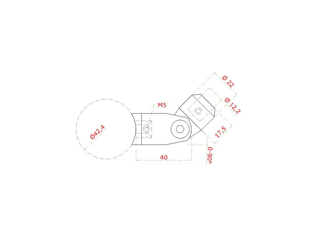 držiak tyče (ø 12mm) nastaviteľný s kĺbom na trubku ø 42.4mm (40x17.5x22mm), brúsená nerez K320 /AISI304
