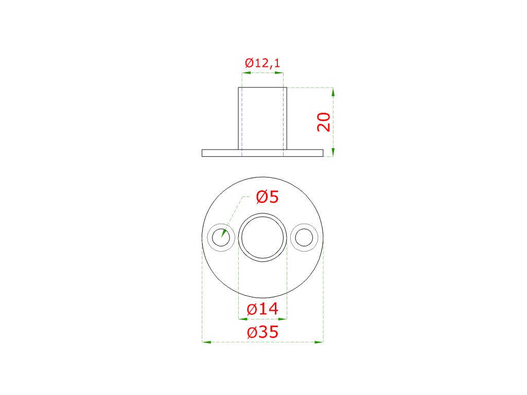 Príruba spodná ø 35 mm, na trubku ø 12 mm, brúsená AISI 304