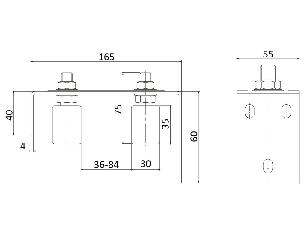 Horné vedenie brány 165 x 75 x 55 mm, šírka 36 - 84 mm