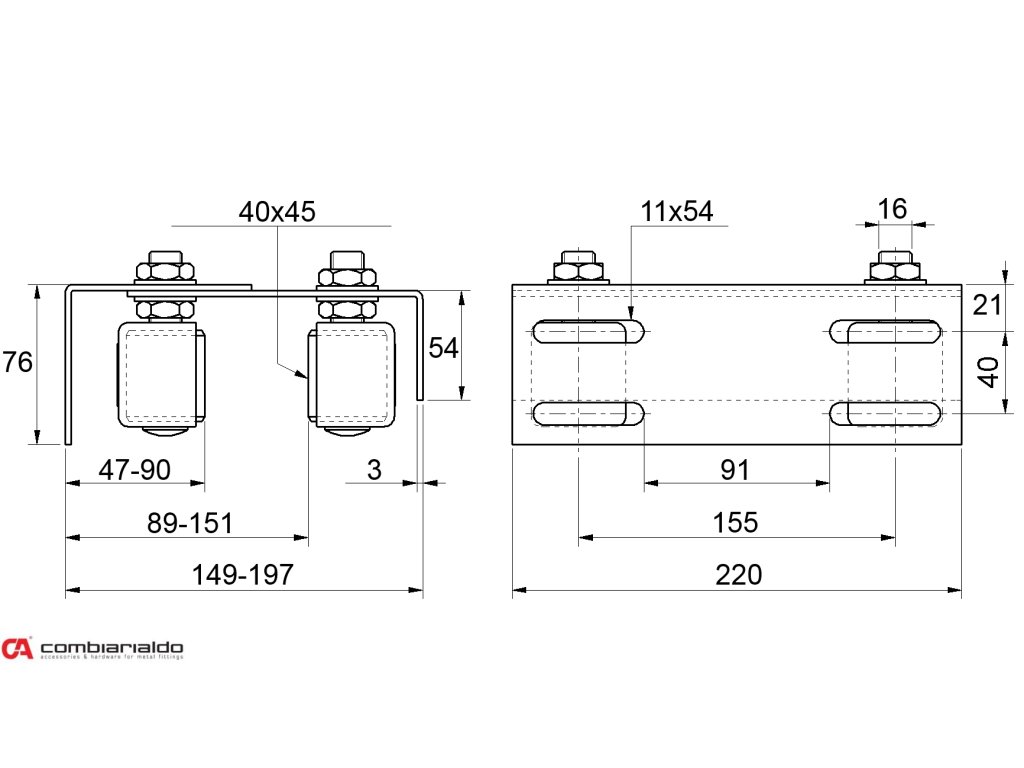 platňa Combi Arialdo so 4 vodiacimi kolieskami (40x45mm / M16)