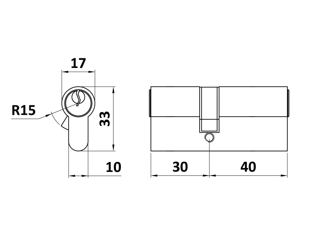 Cylindrická vložka EURO 30/40 mm, niklová, 3 kľúče