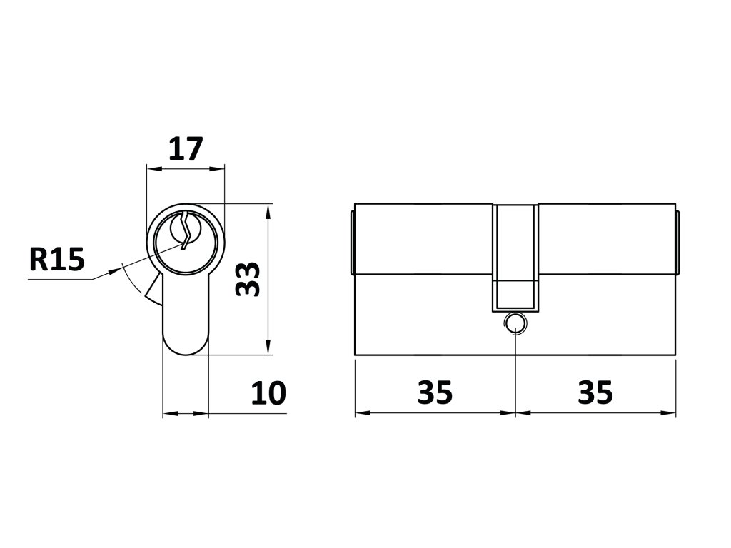 Cylindrická vložka EURO 35/35 mm, mosadzná, 3 kľúče