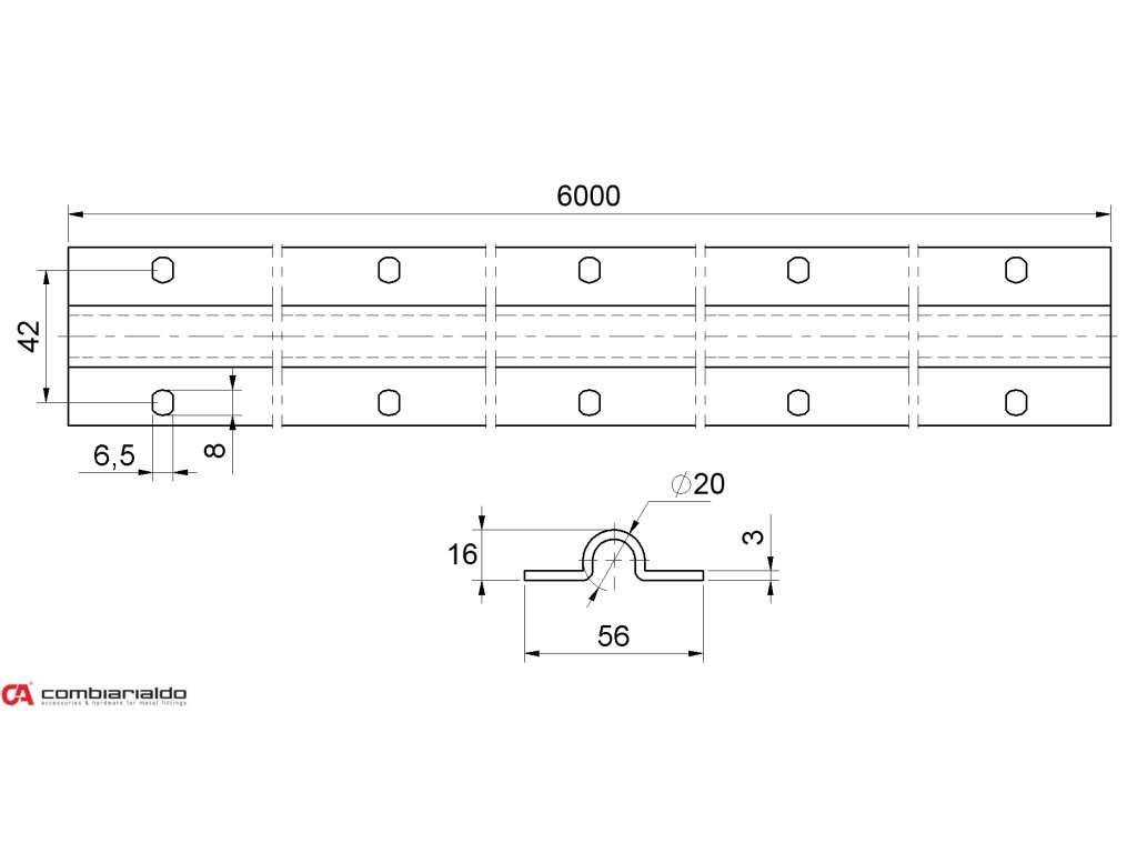 nerezový profil U ø 20mm Combi Arialdo pre posuvné brány, nerez /AISI304
