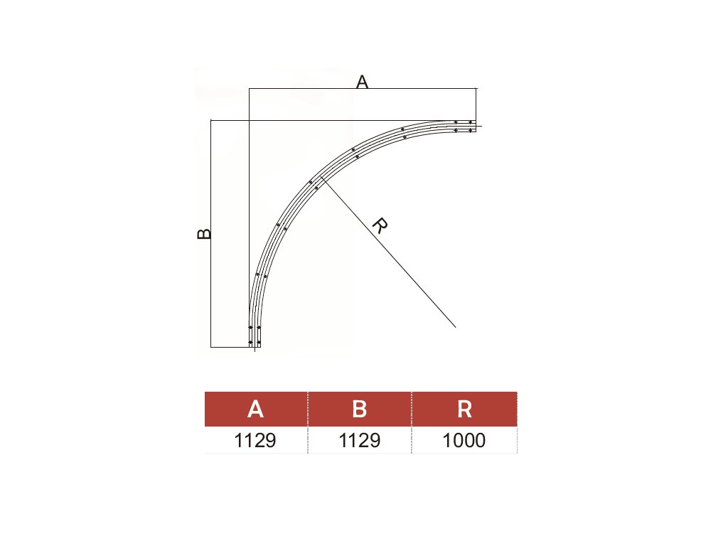 Vodiaci U profil ø 20 mm, polomer 1 m, zakrivenie 90°