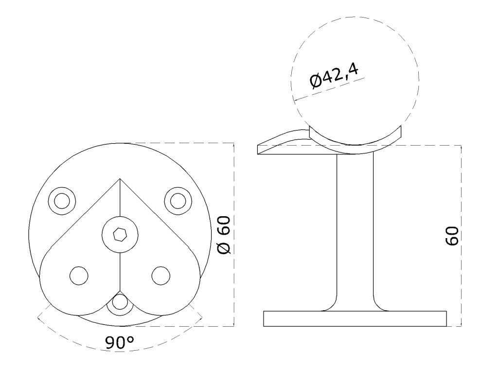 Držiak madla ø 42,4 mm, 90° uhol, brúsená nerez AISI 304