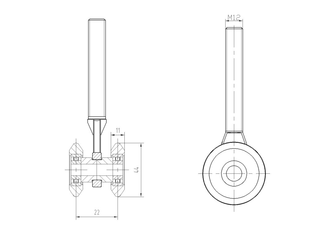 Závesný nylonový vozík s 2 kolieskami pre profil C920M. Nylonové kolieska eliminujú nežiaduce zvuky pri pohybe vo vodiacom profile.