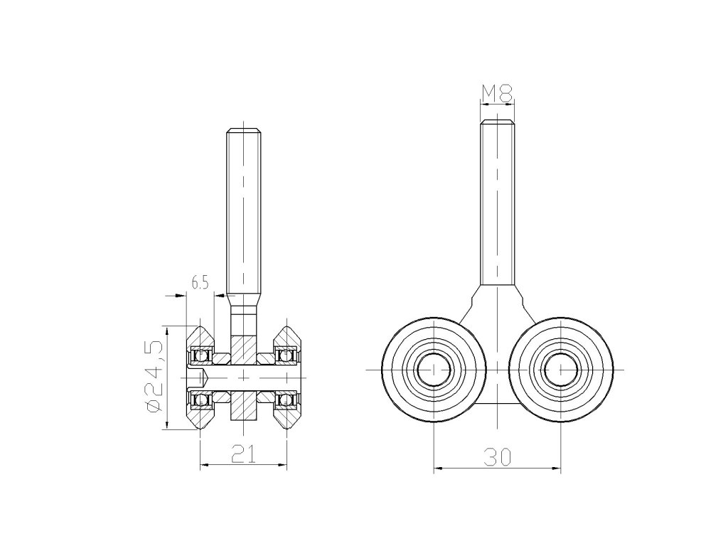 Závesný nylonový vozík so 4 kolieskami pre profil C920P. Nylonové kolieska eliminujú nežiaduce zvuky pri pohybe vo vodiacom profile.
